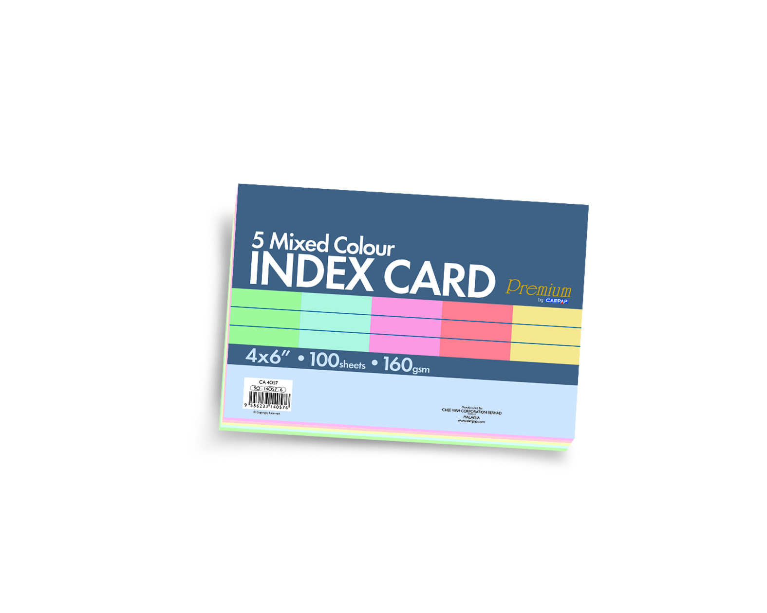CAMPAP PREMIUM INDEX CARDS, 5 MIXED COLORS, 2 SIDE RULED, 160GSM, 4x6", 100S