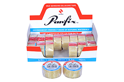 NICHIBAN PANFIX CELLULOSE TAPE, ECO-FRIENDLY, 19mm X 9.1m, 16PC CARDBOARD DISPENSER