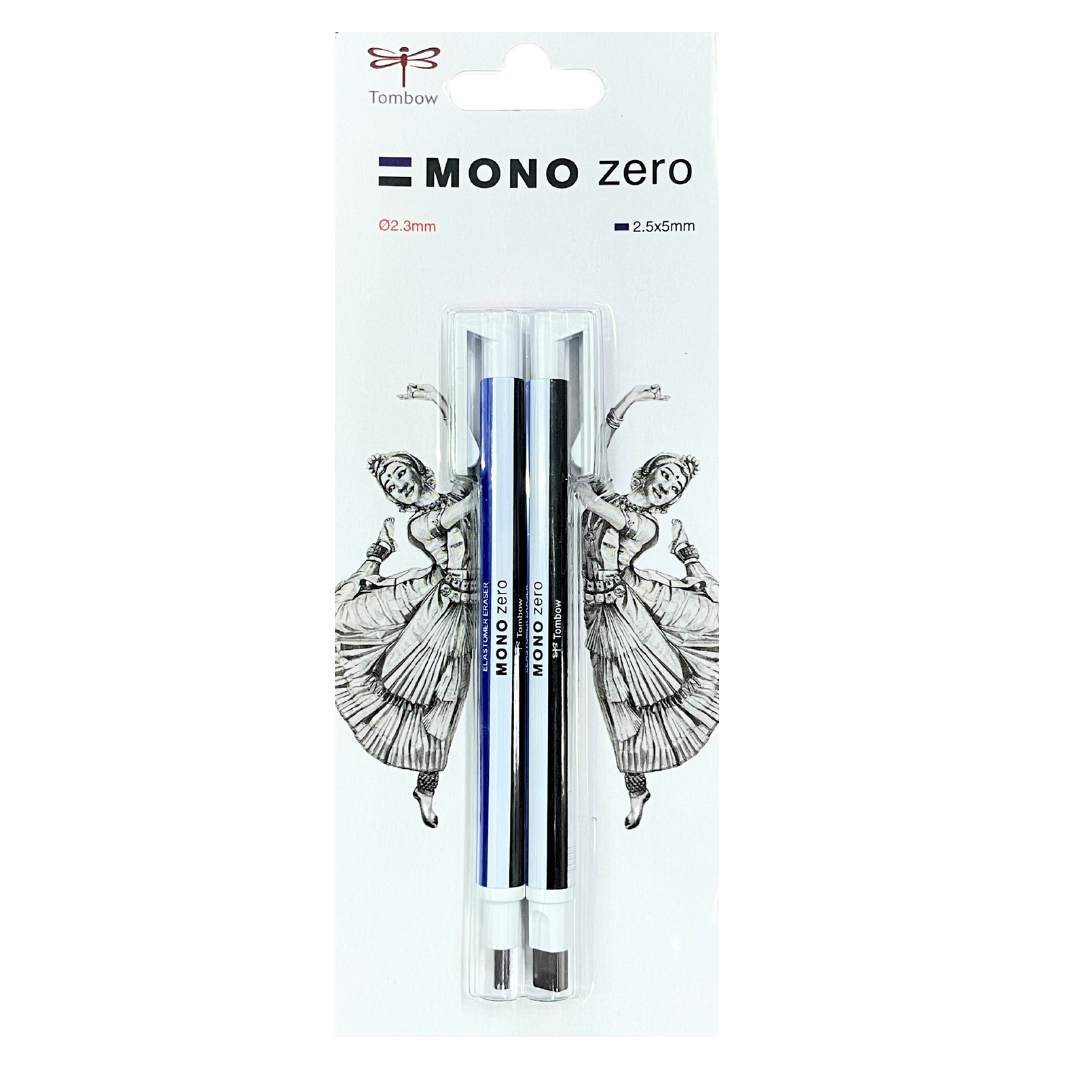 The Tombow Mono Zero Eraser Starter Pack features two precision erasers: a 2.3mm round tip and a 2.5×5mm flat tip.