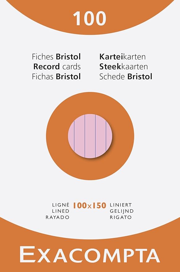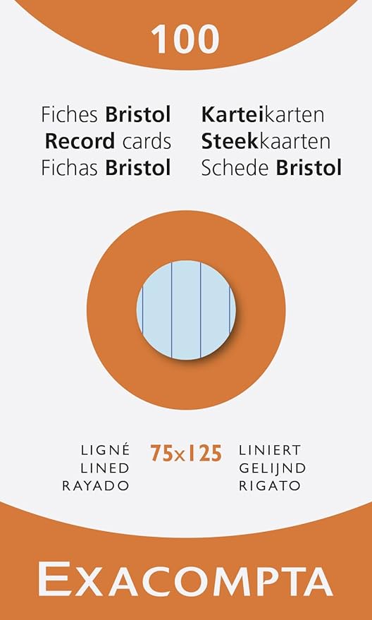 Exacompta Premium Index Cards, Lined, 205gsm Clairefontaine Bristol Paper, Pack of 100 cards in a Box