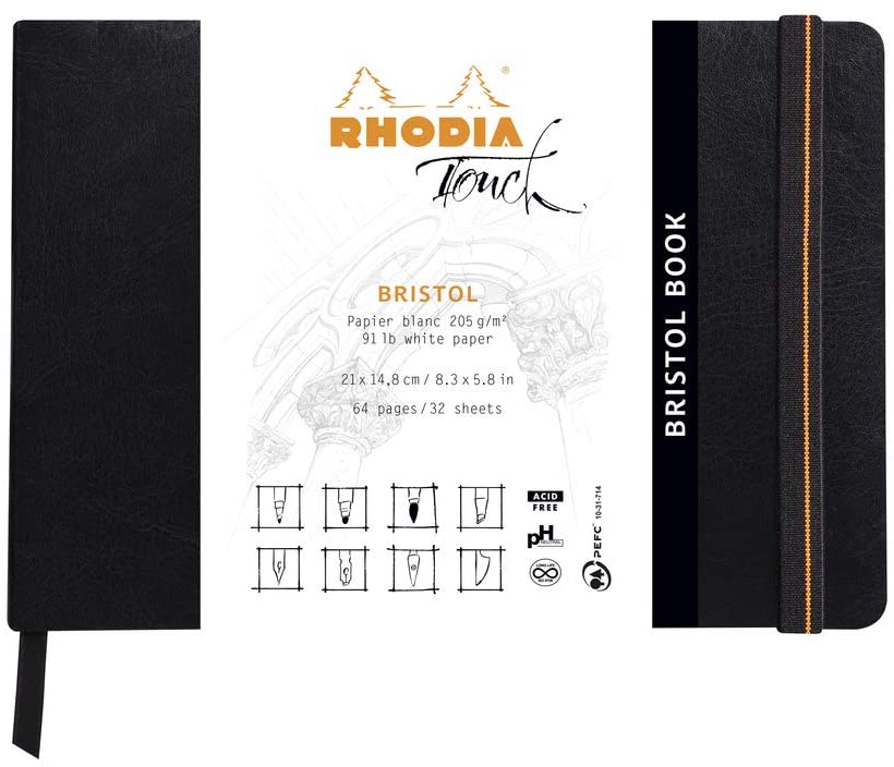 RHODIA TOUCH PREMIUM BRISTOL PAPER SKETCHBOOK, 205GSM, LANDSCAPE, 32 SHEETS, A5