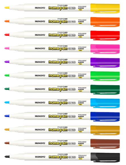MUNGYO NAME PEN, 1.0MM FINE POINT PERMANENT MARKER, SET OF 12 ASSORTED COLORS