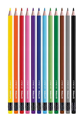 - 12 vibrant, erasable coloured pencils for various projects