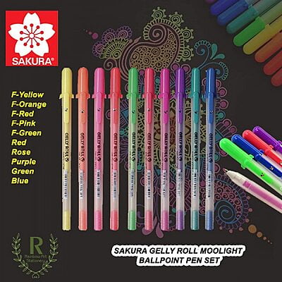 Unleash your creativity with the Sakura Gelly Roll Moonlight Gel Ink Rollerball Pen set. This vibrant collection includes 11 assorted colours, perfect for bold and expressive designs, and an extra white pen for striking highlights and contrasts.