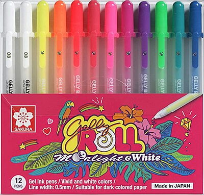 Sakura Gelly Roll Moonlight Gel Ink Rollerball Pen, Set of 11 Assorted Colours + 1 Extra White