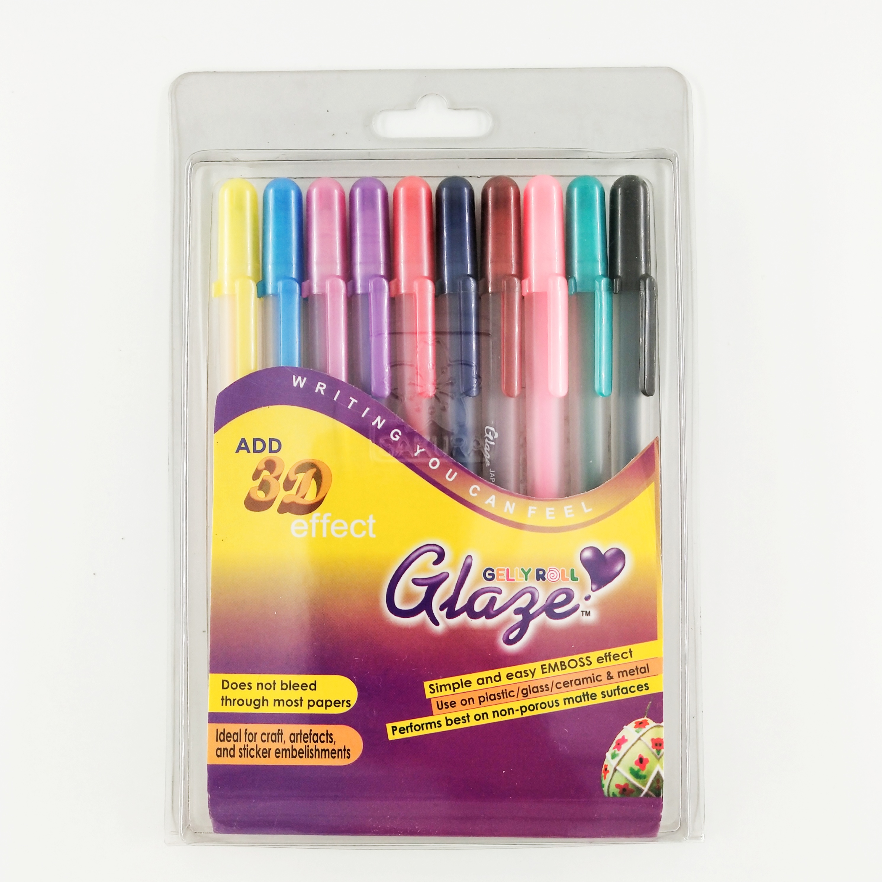 What sets the GellyRoll Glaze apart is its versatility. It works seamlessly on a variety of surfaces, from paper to plastic and even glass, allowing you to explore endless creative possibilities. The raised effect of the ink not only adds dimension but also texture, making your artwork stand out.