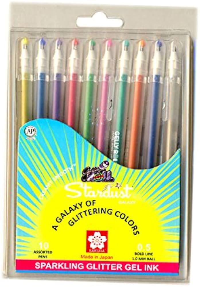 Available in a captivating range of colors, the Sakura Gellyroll Stardust pen invites you to explore your creative side and embellish your work with a touch of magic. Whether you're a professional artist or a casual doodler, this pen is perfect for anyone looking to enhance their creative projects with a little extra flair. Embrace the shimmer and let your imagination soar with the Sakura Gellyroll Stardust Gel Ink Rollerball Pen!