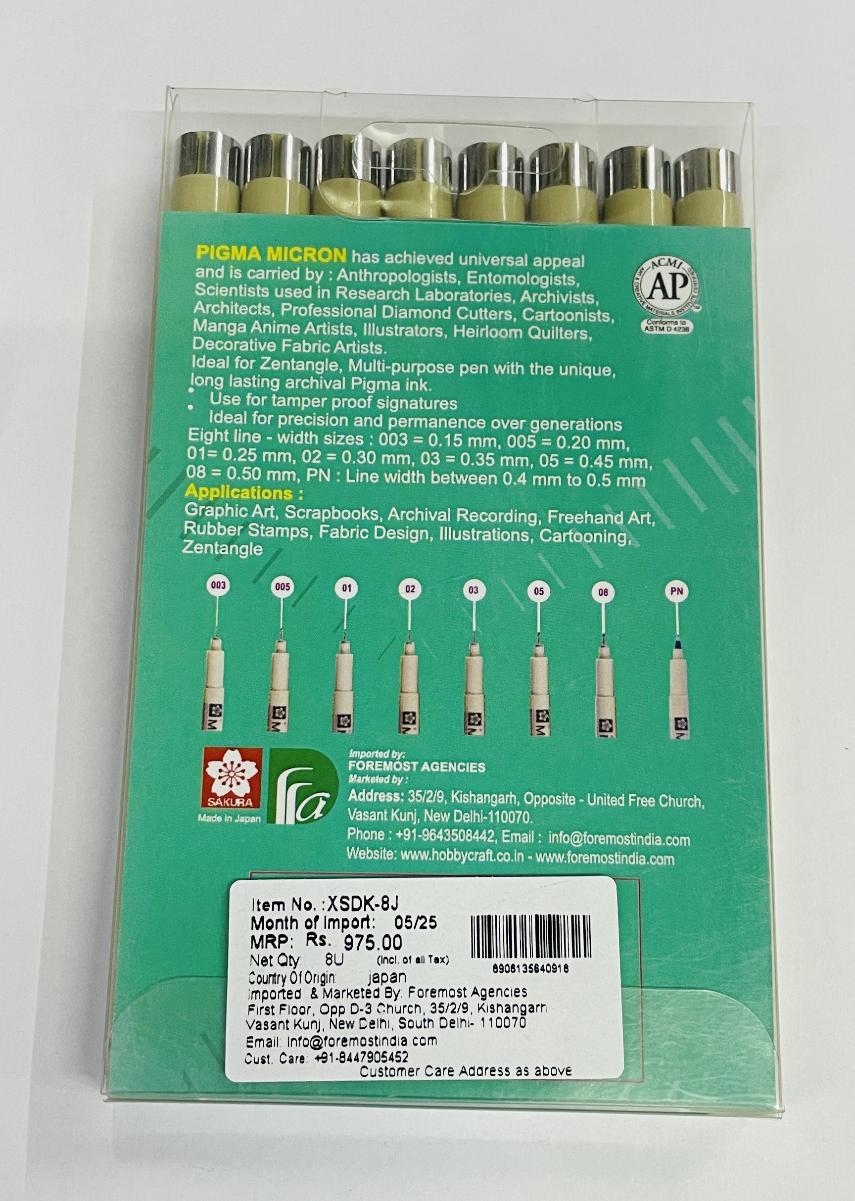 XSDK-8J SAKURA PIGMA MICRON SET OF 8 PENS