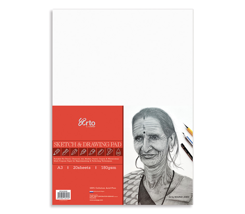 Adding to its charm, the pack features beautiful cover art designed by renowned artist Sourav Joshi, inspiring creativity from the moment you pick it up. Whether you’re practising techniques or creating a masterpiece, the Campap Sketch & Drawing Paper is your trusted companion for artistic exploration.